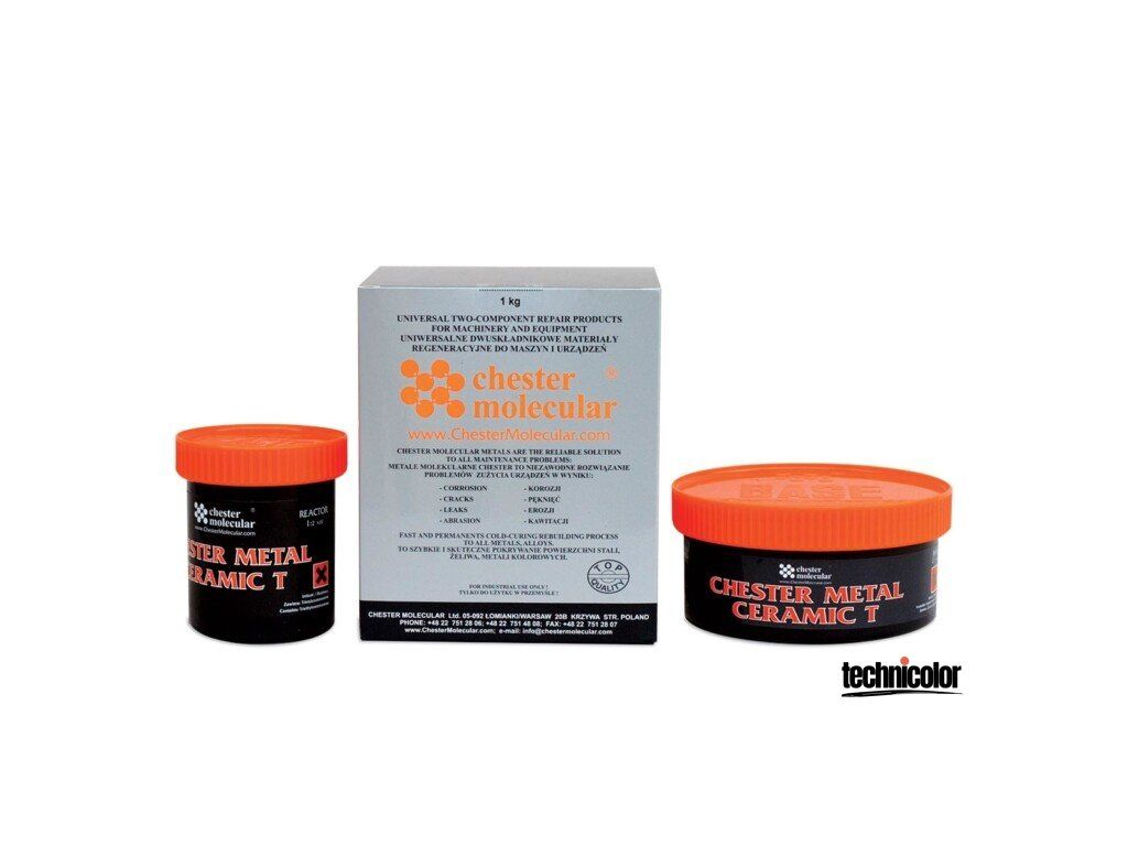 Chester Metal Ceramic T je dvousložkový pastovitý epoxid - keramický kompozit. Materiál obsahuje speciální pryskyřice, keramická a vlákninová plnidla. Tmel je určený pro ochranu a renovaci povrchů extrémně namáhaných otěrem, erozí, korozí, kavitací apod.
